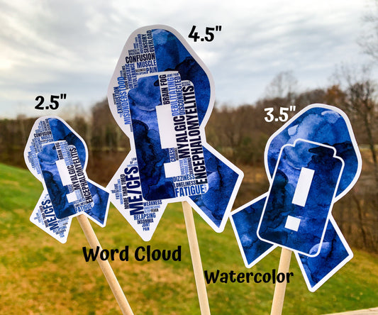 ME/CFS Sticker, Myalgic Encephalomyeletis Chronic Fatigue Syndrome Awareness Ribbon Word Cloud Blue Ribbon Sticker