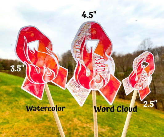 CRPS Sticker, Chronic Regional Pain Syndrome Awareness Ribbon Word Cloud Orange Ribbon Sticker