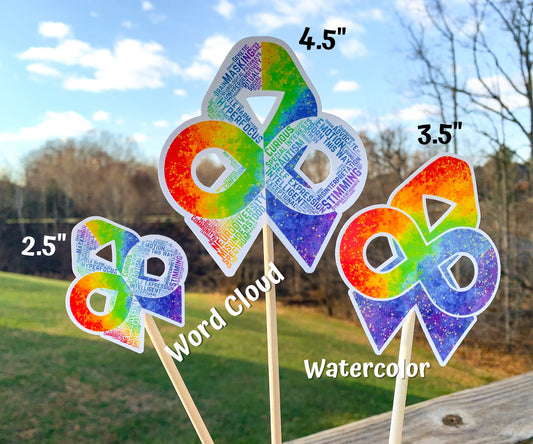 Neurodiversity Sticker, Autism Neurodiversity Awareness Ribbon Word Cloud Rainbow Gold Infinity Ribbon Sticker