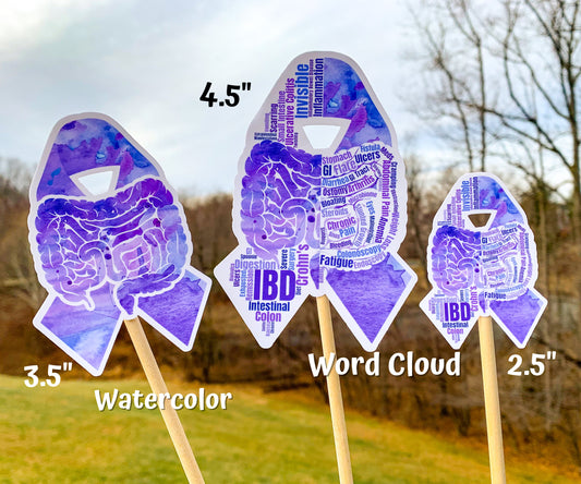 IBD Sticker, Inflammatory Bowel Disease Awareness Ribbon Word Cloud Crohn's Disease Ulcerative Colitis Purple Ribbon Sticker
