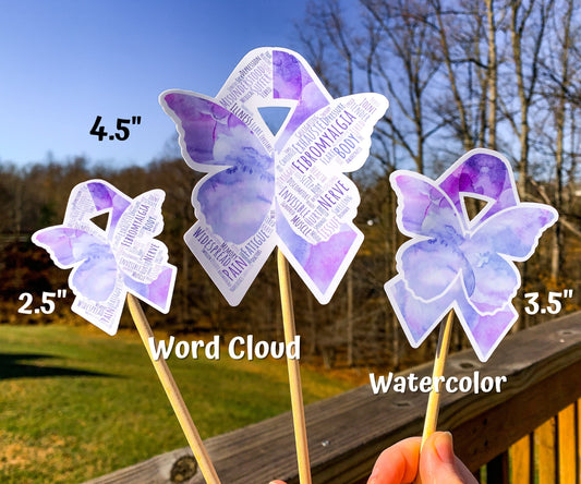 Fibromyalgia Sticker, Fibromyalgia Butterfly Chronic Pain Awareness Ribbon Word Cloud Purple Ribbon Sticker