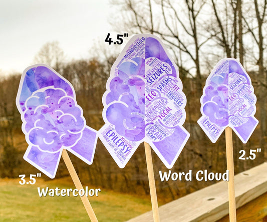Epilepsy Sticker, Epilepsy Awareness Ribbon Word Cloud Seizure Brain Purple Ribbon Sticker